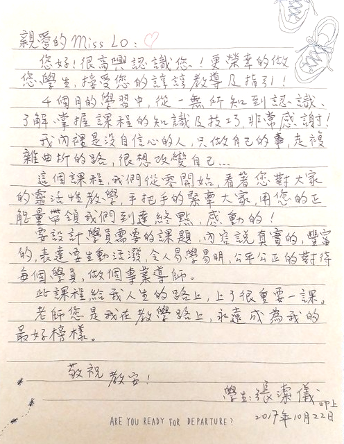 課程 : 專業培訓及評審高級文憑課程 學員 : 張潔儀 日期 : Oct2017